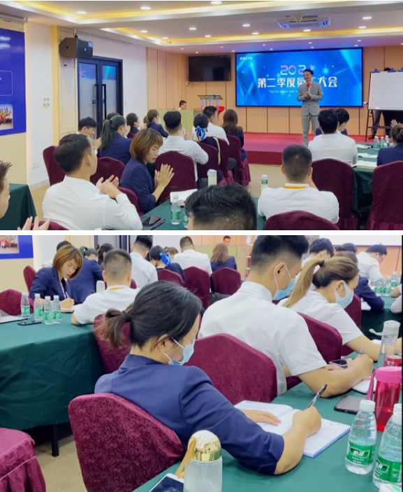 尚艺学院的员工们都在认真台下听讲, 积极反思。陈总也对7月业绩目标及重点工作安排进行了重要指示。